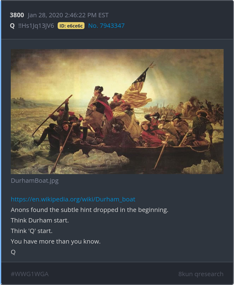 Anons found the subtle hint dropped in the beginning. Think Durham start. Think 'Q' start. You have more than you know. https://en.wikipedia.org/wiki/Durham_boat Posted 01/27/2026 08:00 PM Categories Clips, Q