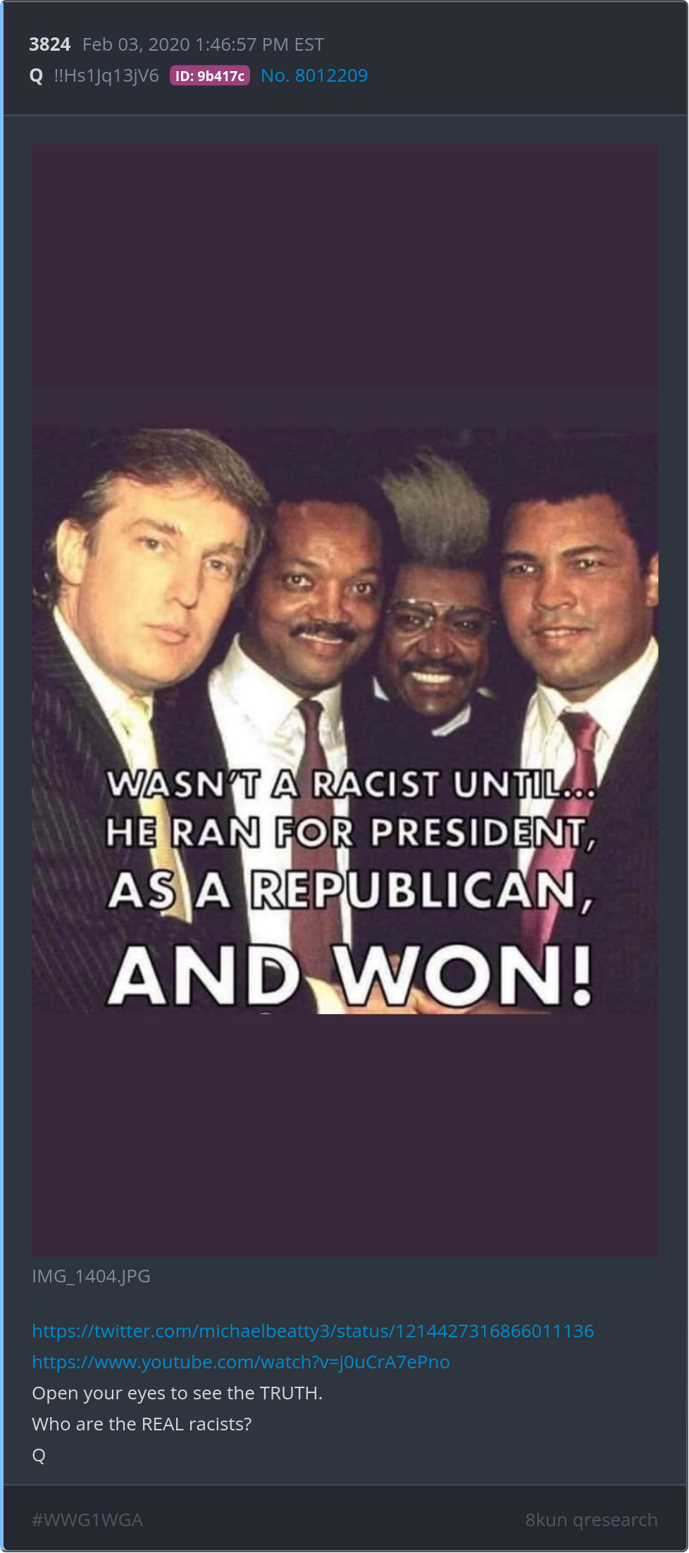 Open your eyes to see the TRUTH. Who are the REAL racists? https://twitter.com/michaelbeatty3/status/1214427316866011136> Posted 02/02/2026 08:28 PM Categories Clips, Q