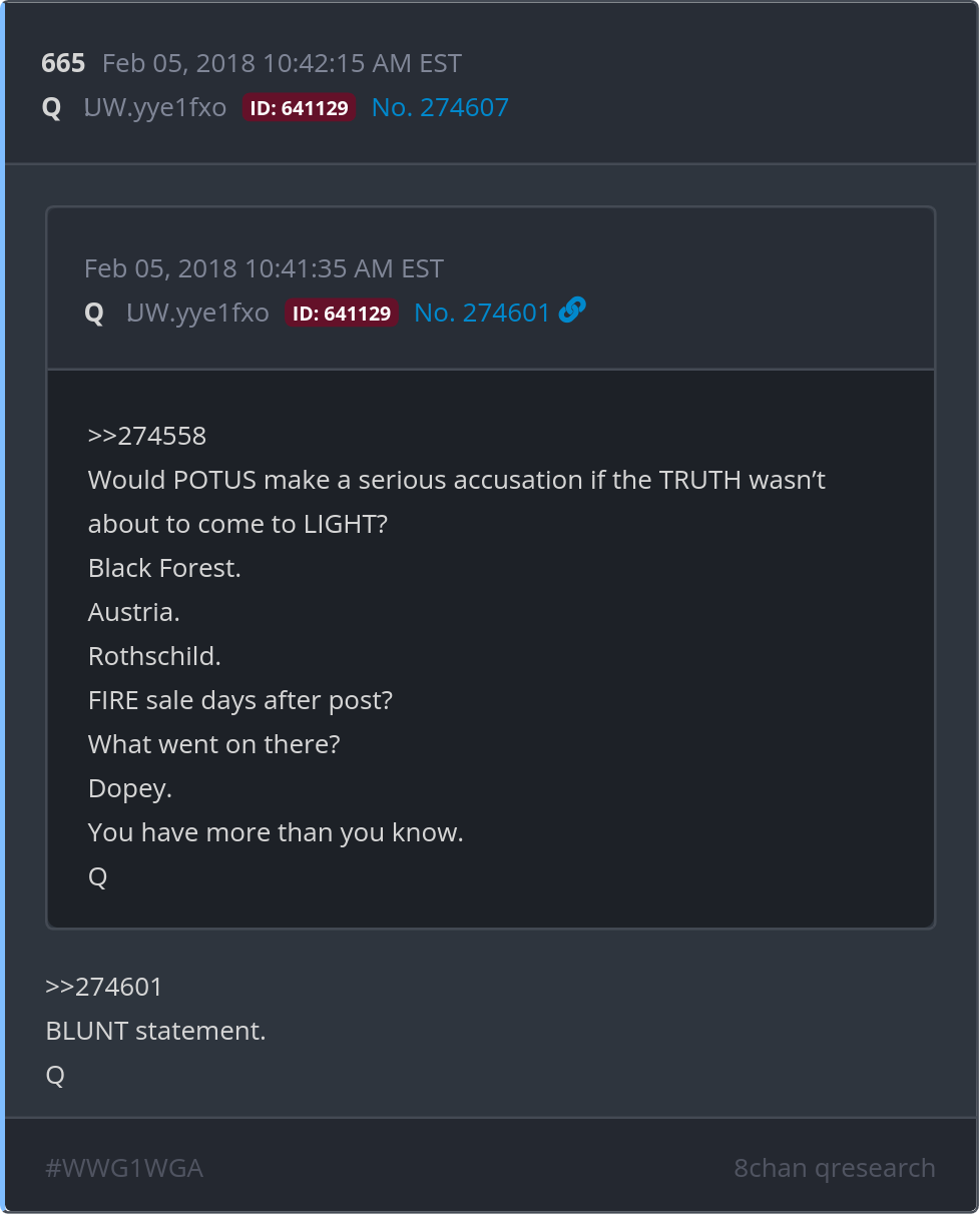Black Forest. Austria. Rothschild. FIRE sale days after post? What went on there? Dopey. You have more than you know. Posted 02/04/2026 07:37 PM Categories Clips, Q