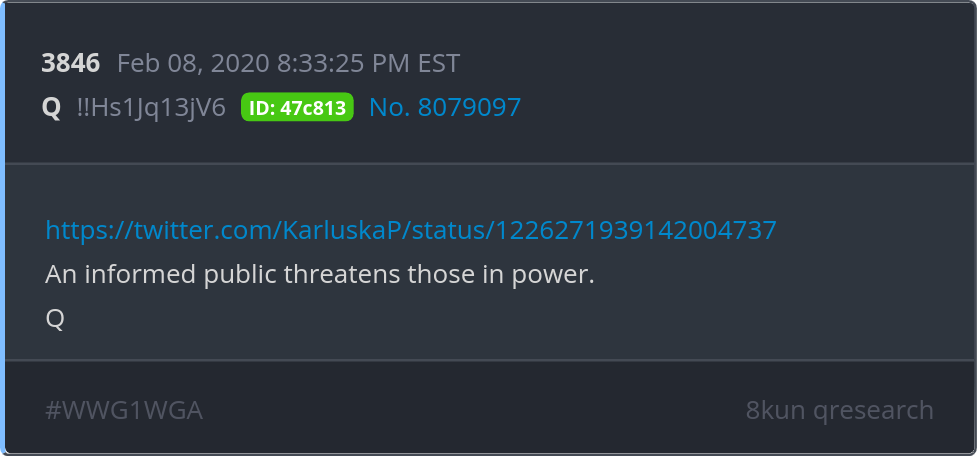 An informed public threatens those in power. https://twitter.com/KarluskaP/status/1226271939142004737 Posted 02/07/2026 08:44 PM Categories Clips, Q