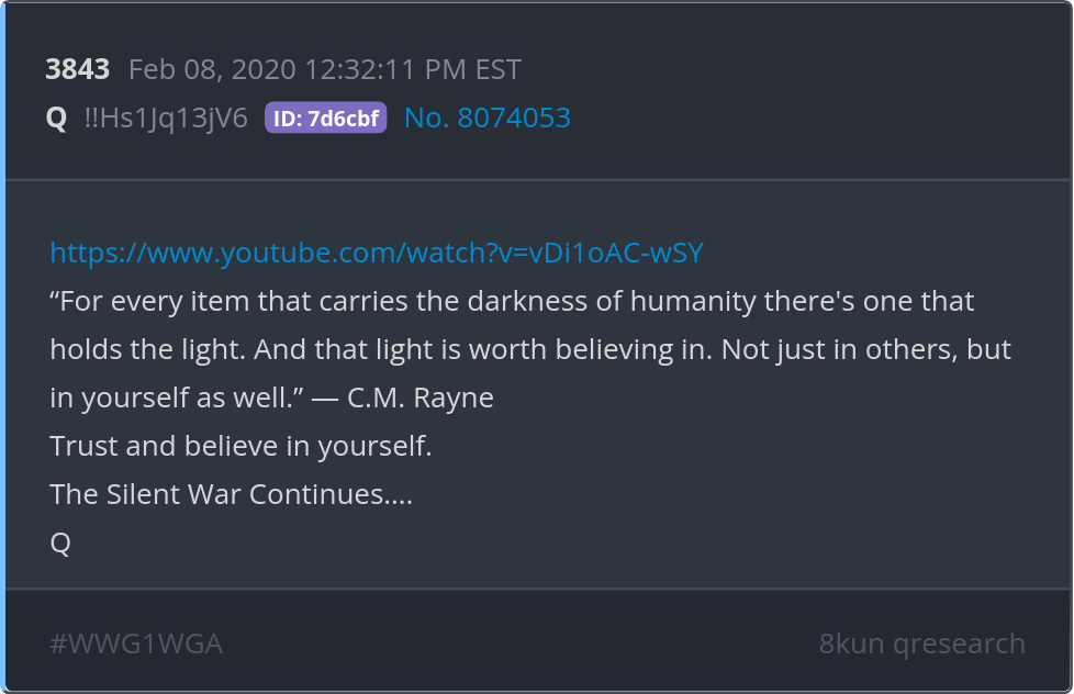 “For every item that carries the darkness of humanity there's one that holds the light. And that light is worth believing in. Not just in others, but in yourself as well.” ― C.M. Rayne https://www.youtube.com/watch?v=vDi1oAC-wSY Posted 02/07/2026 08:48 PM Categories Clips, Q