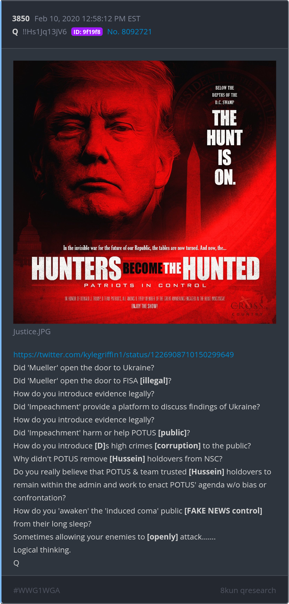 How do you 'awaken' the 'induced coma' public [FAKE NEWS control] from their long sleep? Sometimes allowing your enemies to [openly] attack……. Logical thinking. https://twitter.com/kylegriffin1/77status/1226908710150299649 Posted 02/09/2026 07:48 PM Categories Clips, Q