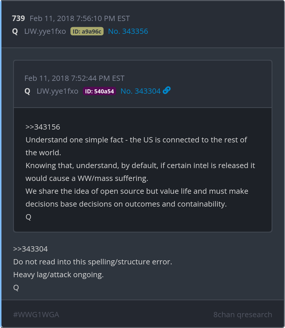 Understand one simple fact - the US is connected to the rest of the world. Knowing that, understand, by default, if certain intel is released it would cause a WW/mass suffering. Posted 02/10/2026 07:59 PM Categories Clips, Q