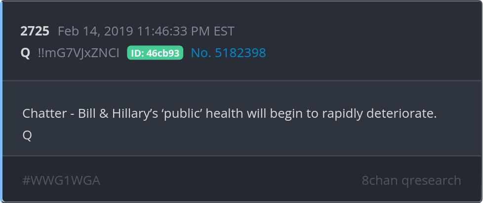 Chatter - Bill & Hillary’s ‘public’ health will begin to rapidly deteriorate. Posted 02/13/2026 08:52 PM Categories Clips, Q