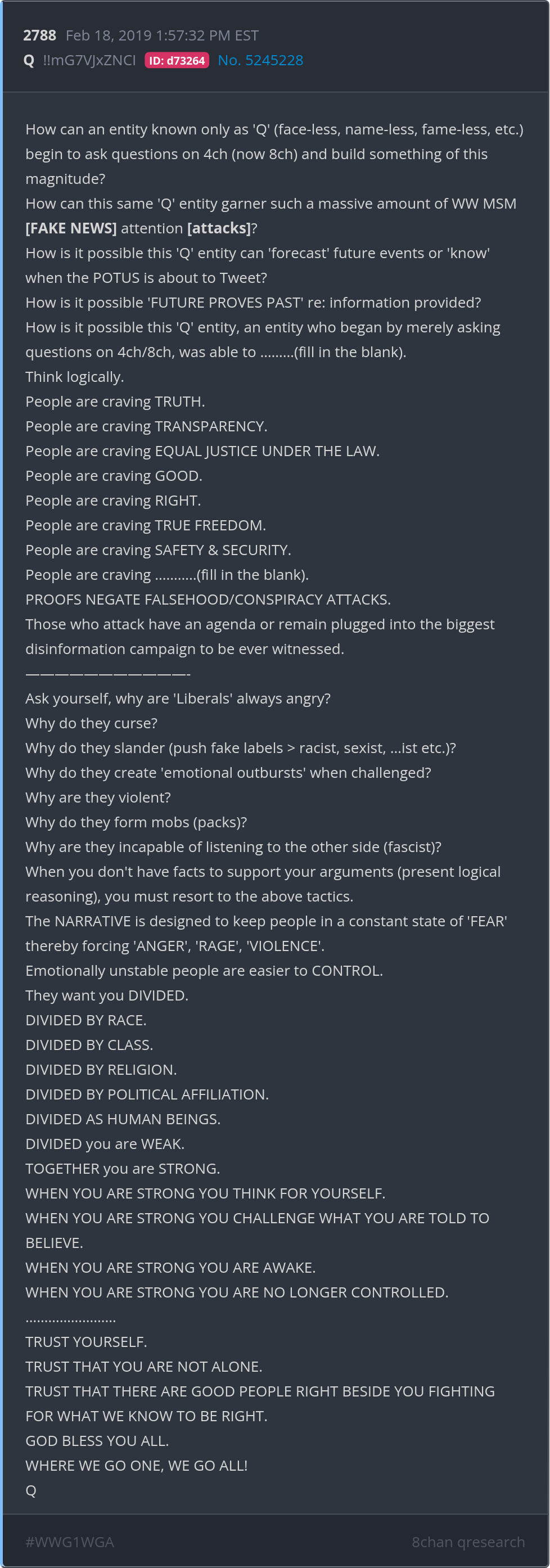 Those who attack have an agenda or remain plugged into the biggest disinformation campaign to be ever witnessed. Posted 02/17/2026 08:29 PM Categories Clips, Q