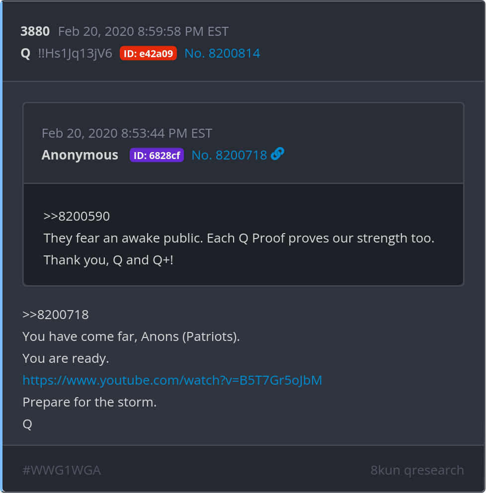 You are ready. Prepare for the storm. https://www.youtube.com/watch?v=B5T7Gr5oJbM Posted 02/19/2026 07:59 PM Categories Clips, Q