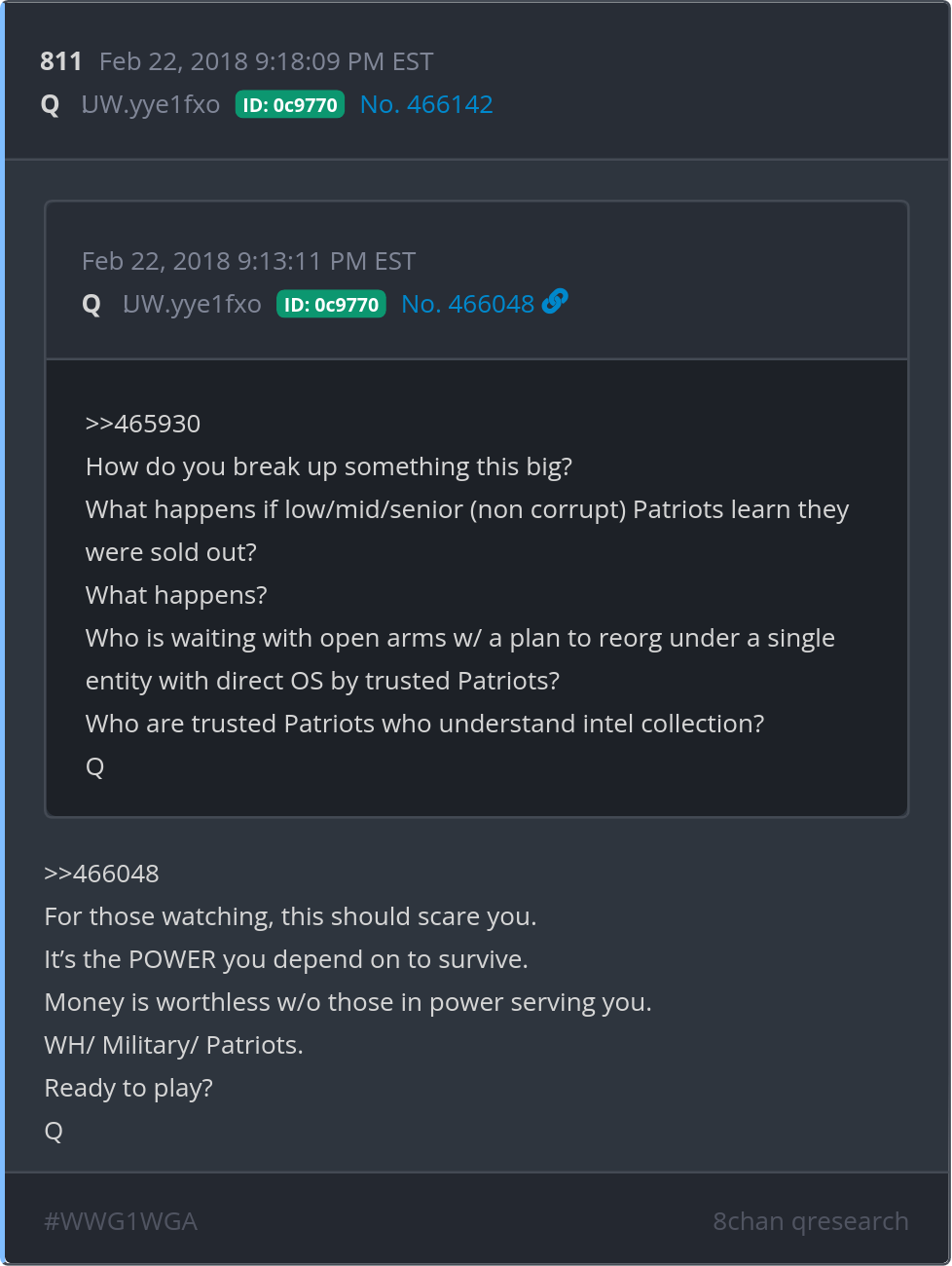 For those watching, this should scare you. It’s the POWER you depend on to survive. Money is worthless w/o those in power serving you. WH/ Military/ Patriots. Ready to play? Posted 02/21/2026 08:54 PM Categories Clips, Q