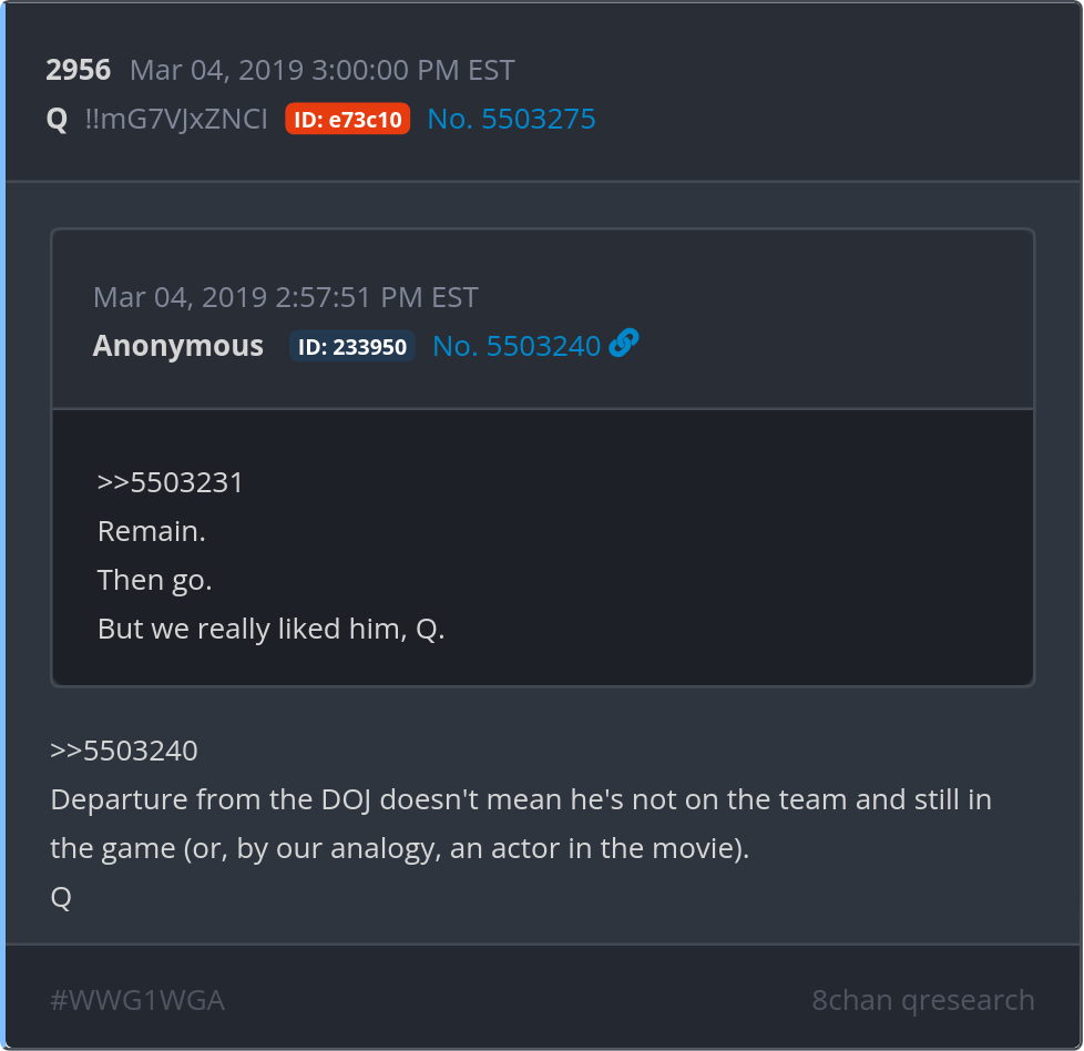 Departure from the DOJ doesn't mean he's not on the team and still in the game (or, by our analogy, an actor in the movie). Posted 03/03/2026 08:05 PM Categories Clips, Q