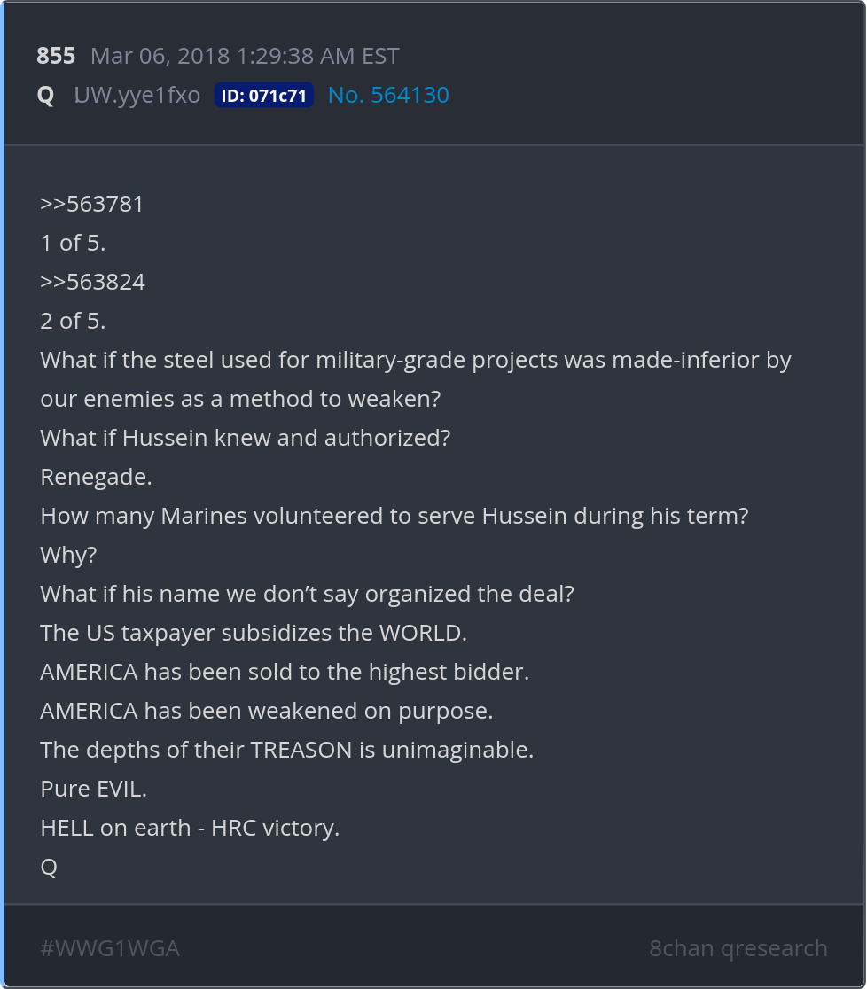 What if the steel used for military-grade projects was made-inferior by our enemies as a method to weaken? What if Hussein knew and authorized? Posted 03/05/2026 08:15 PM Categories Clips, Q