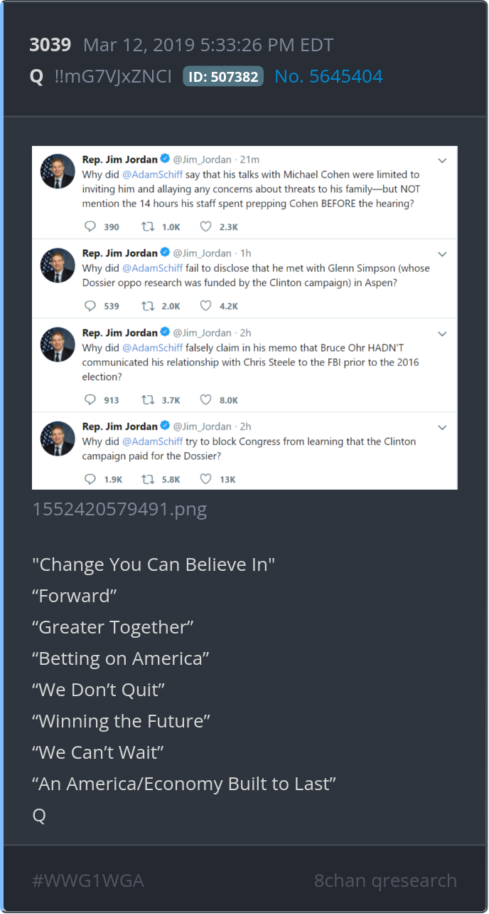 "Change You Can Believe In" “Forward” “Greater Together” “Betting on America” “We Don’t Quit” “Winning the Future” “We Can’t Wait” “An America/Economy Built to Last” Posted 03/11/2026 08:42 PM Categories Clips, Q