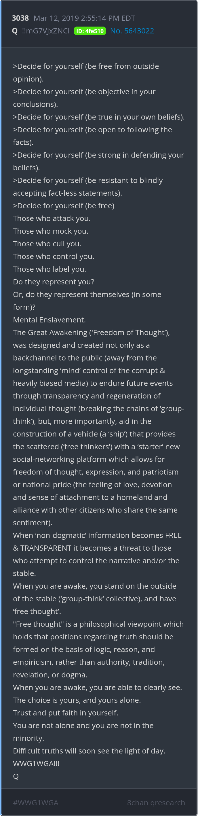 You are not alone and you are not in the minority. Difficult truths will soon see the light of day. WWG1WGA!!! Posted 03/11/2026 08:43 PM Categories Clips, Q