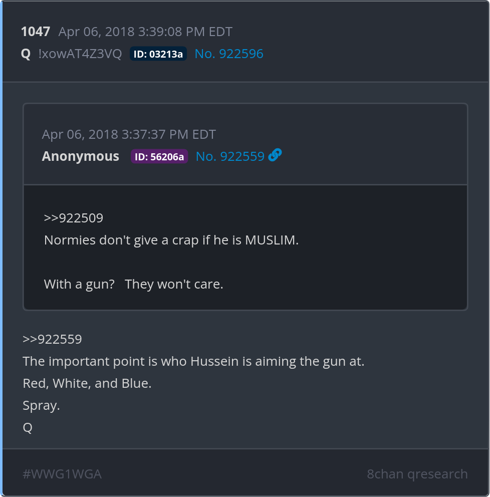 The important point is who Hussein is aiming the gun at. Red, White, and Blue. Spray. Posted 04/06/2026 09:41 AM Categories Clips, Q