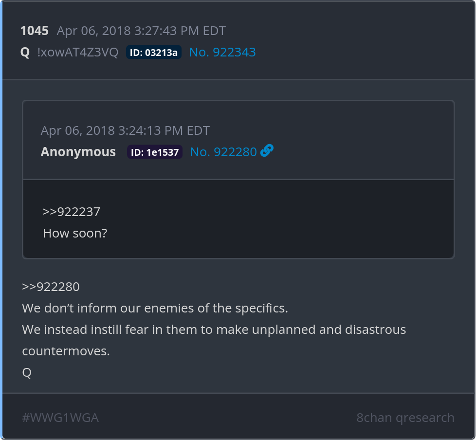 We don’t inform our enemies of the specifics. We instead instill fear in them to make unplanned and disastrous countermoves. Posted 04/06/2026 09:42 AM Categories Clips, Q