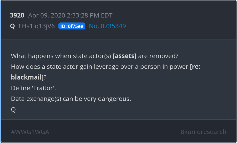 What happens when state actor(s) [assets] are removed? How does a state actor gain leverage over a person in power [re: blackmail]? Define 'Traitor'. Posted 04/09/2026 09:37 AM Categories Clips, Q