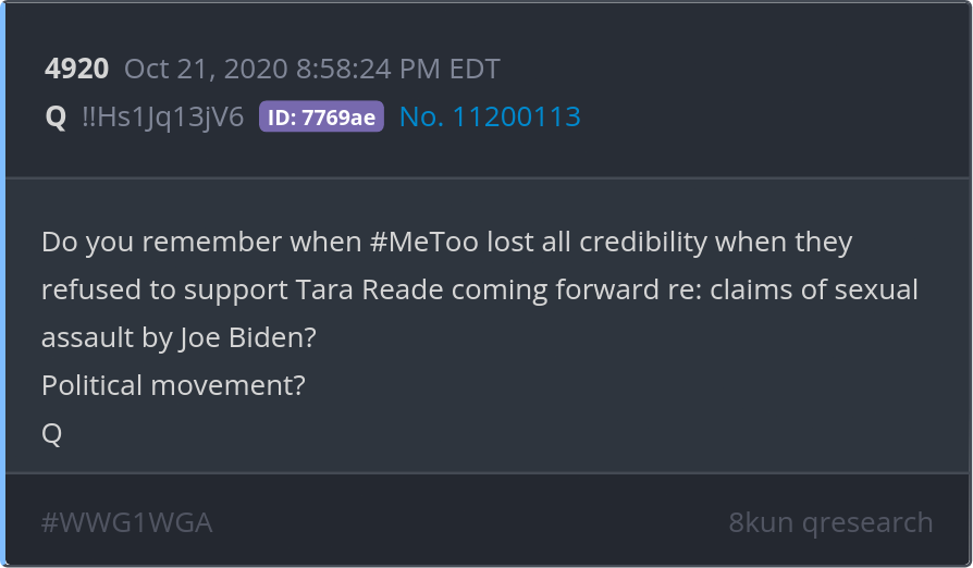 Do you remember when #MeToo lost all credibility when they refused to support Tara Reade coming forward re: claims of sexual assault by Joe Biden? Political movement?