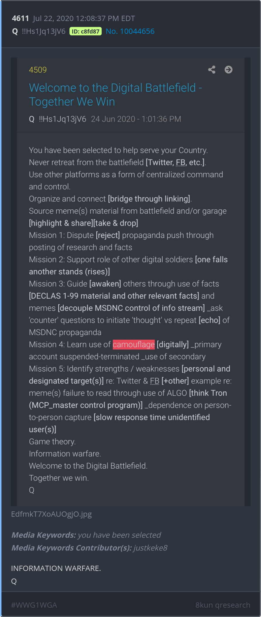 “World War 3 is a guerrilla information war with no division between military and civilian participation.”Posted ·