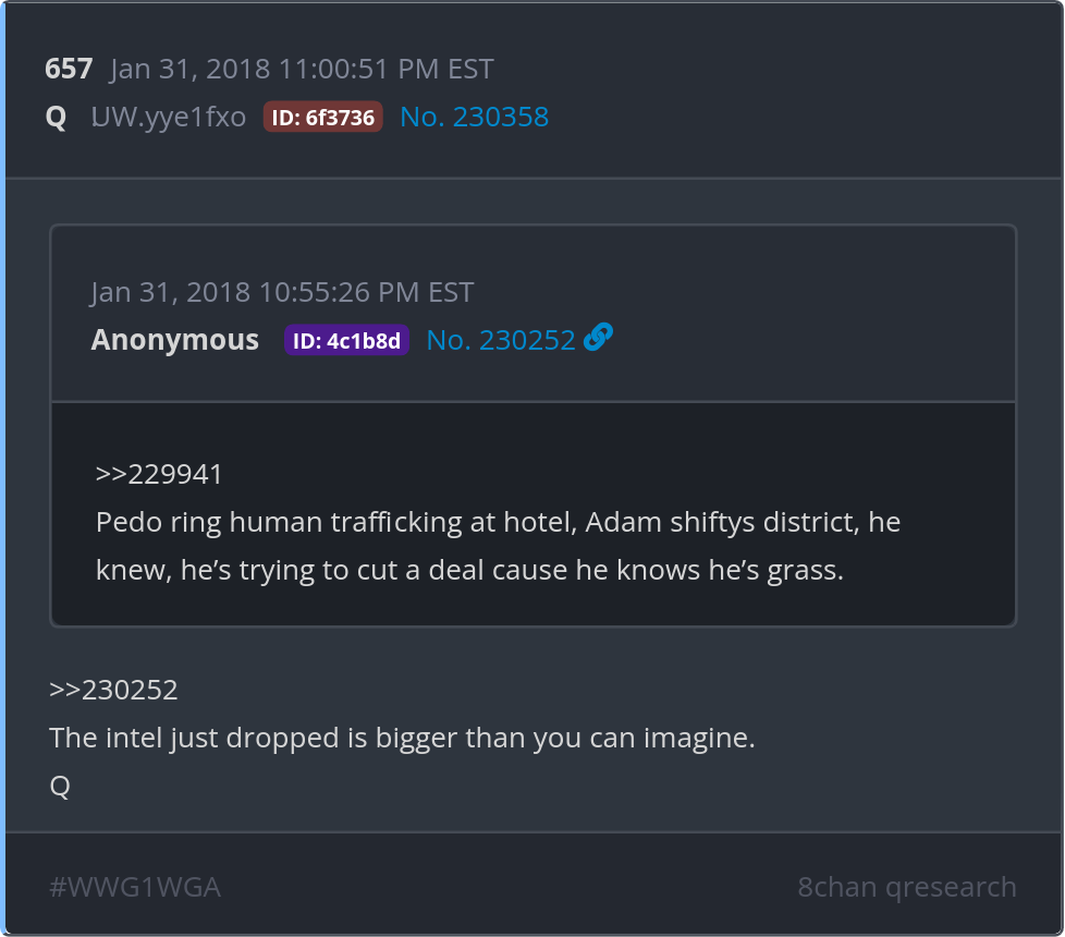 Pedo ring human trafficking at hotel, Adam shiftys district, he knew, he’s trying to cut a deal cause he knows he’s grass.
