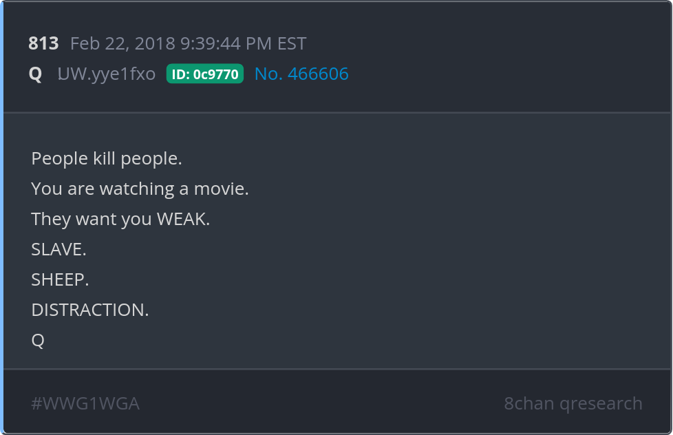 People kill people. You are watching a movie. They want you WEAK. SLAVE. SHEEP. DISTRACTION.