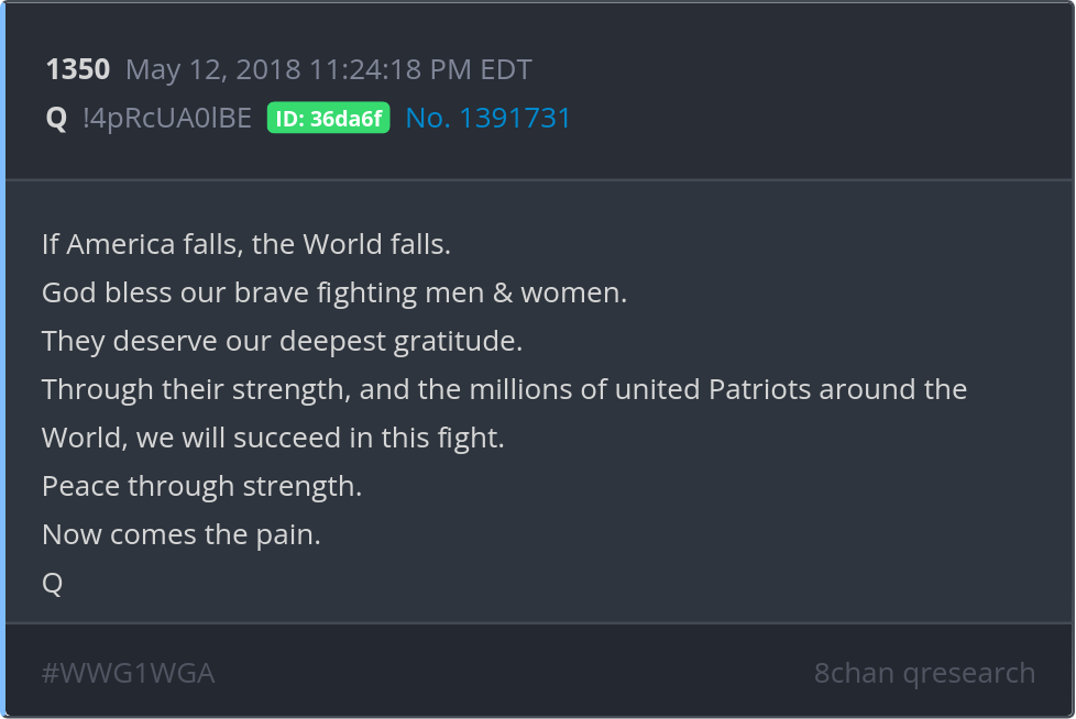 If America falls, the World falls. Peace through strength. Now comes the pain.