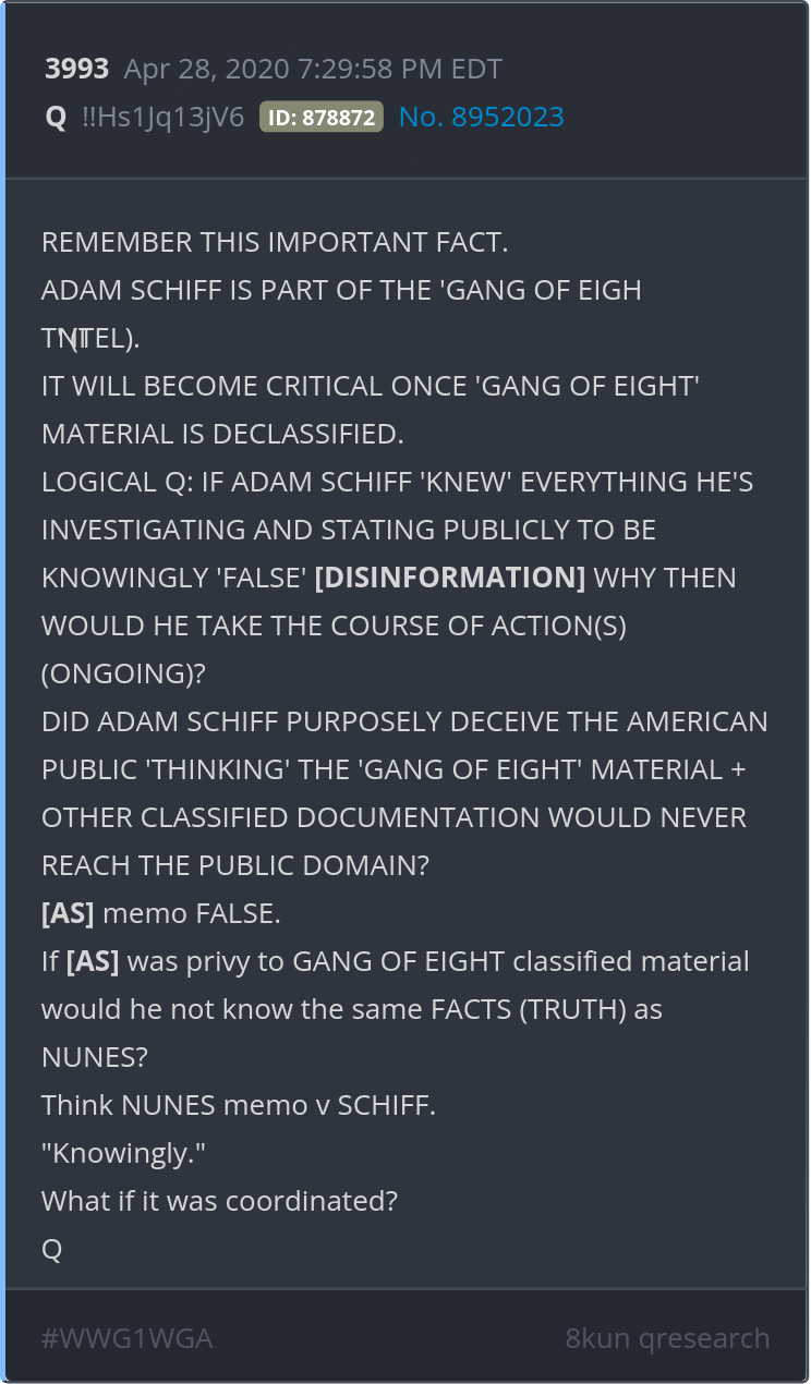 DID ADAM SCHIFF PURPOSELY DECEIVE THE AMERICAN PUBLIC 'THINKING' THE 'GANG OF EIGHT' MATERIAL + OTHER CLASSIFIED DOCUMENTATION WOULD NEVER REACH THE PUBLIC DOMAIN?