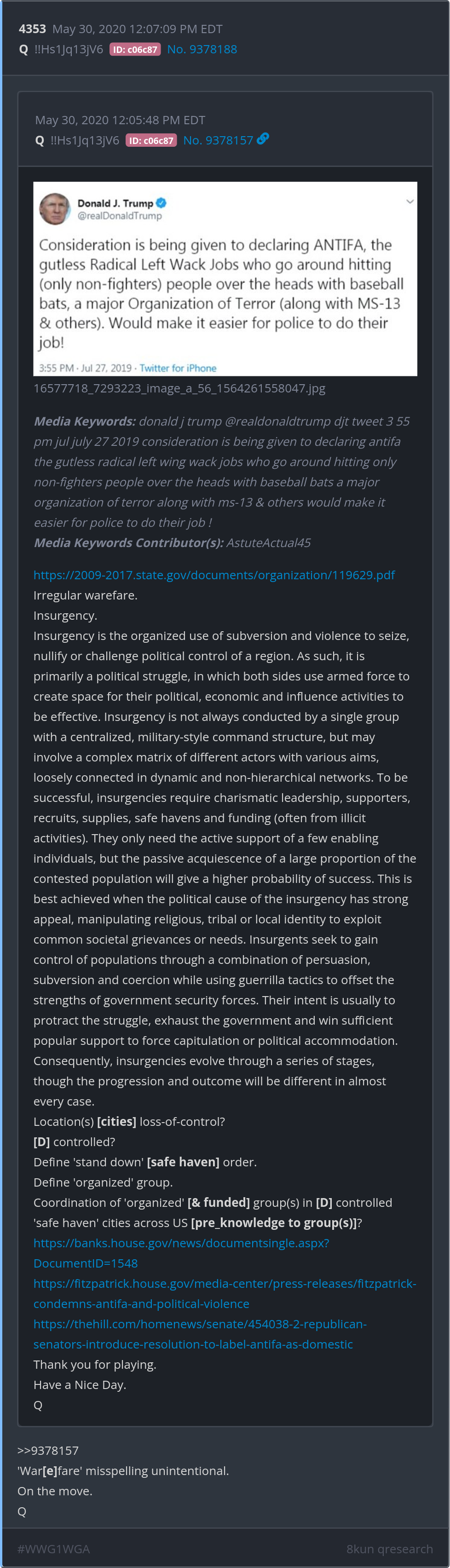 Fortify it to the maximum and quash Antifa. Show NO MERCY. pic.twitter.com/nofchbU7hwPosted ·